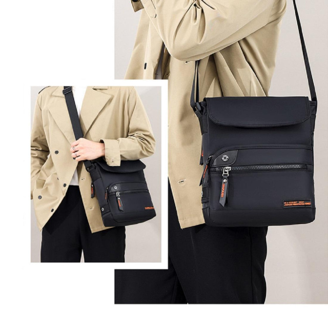 Сумка чоловіча 766965A пошита із міцної чорної тканини.