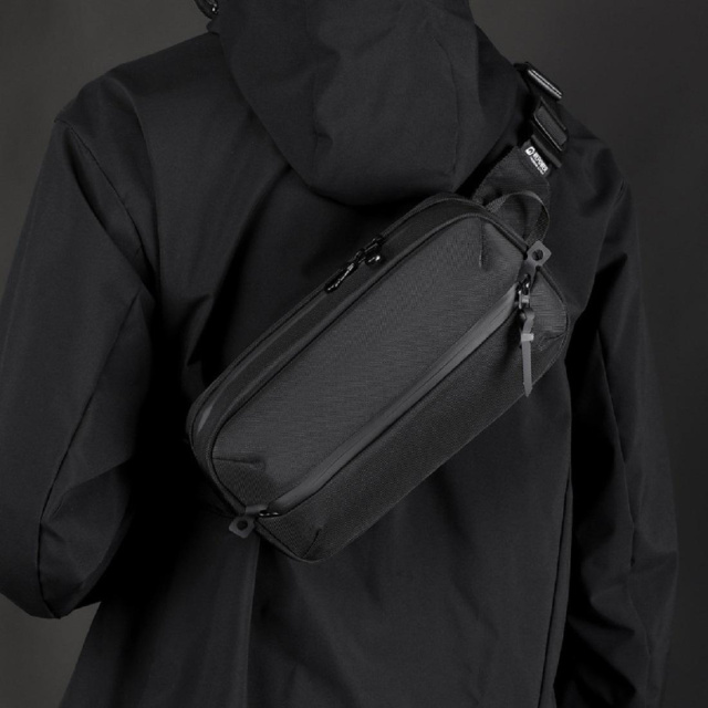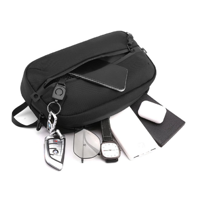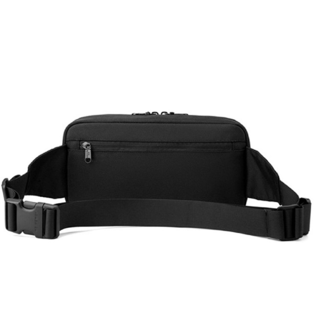 Класична текстильна сумка на пояс AT08-2121A пошита з міцного вологостійкого текстилю в чорному кольорі.