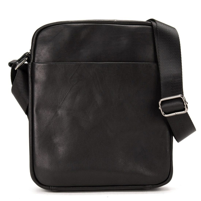 Сумка через плече Tiding Bag S-N2-244A чоловіча з натуральної шкіри, в чорному кольорі, гладкої фактури.