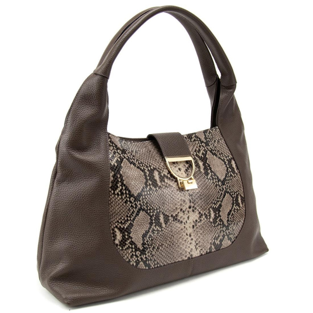 Жіноча містка шкіряна сумка на плече із вставкою рептилія Tavinchi CH-555DB-R