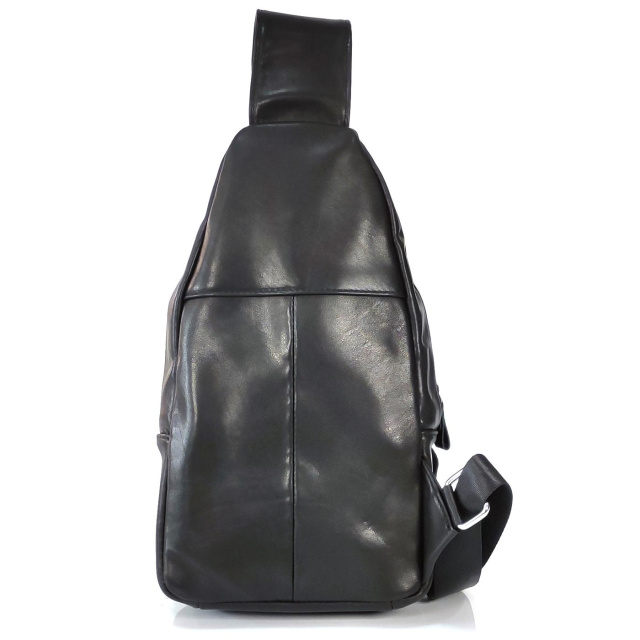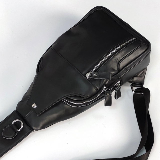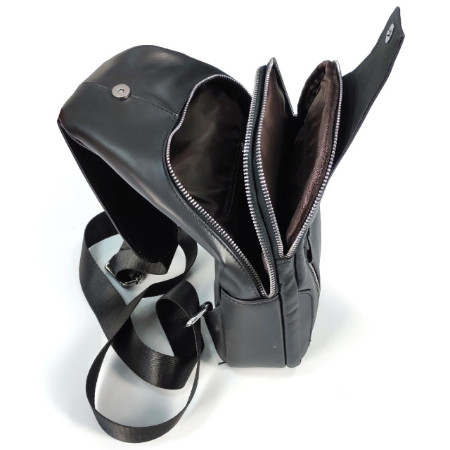 Стильний шкіряний чоловічий слінг Tiding Bag FL-N2-4004A виготовлений із натуральної шкіри чорного кольору, що має гладку текстуру.