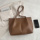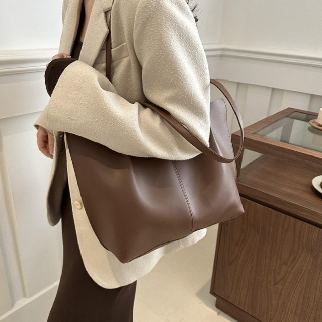 Сумка має одне основне відділення, яке закривається на кнопку, довгі ручки.