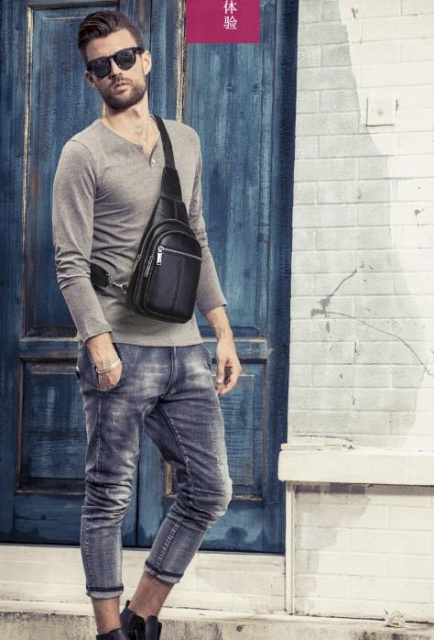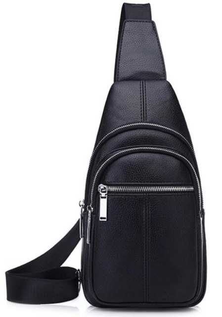 Стильний шкіряний чоловічий слінг Tiding Bag A25F-5060A виготовлений з натуральної шкіри чорного кольору має зернисту текстуру.