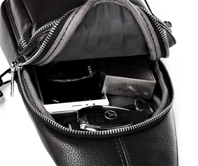 Всередині - рюкзак має одну кишеню відкритого типу і одну кишеню бічну розташовану на спинці слінгу на блискавці з розміром 11х10 см.