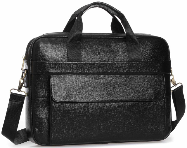 Представлена модель ділової сумки в стриманому класичному виконанні ідеально доповнить класичний костюм або повсякденний стиль одягу. Матова зерниста поверхня в поєднанні з бронзовою фурнітурою і багатофункціональністю роблять цей портфель для ноутбука вірним супутником для роботи, ділових зустрічей або відряджень. Варто зробити акцент на якісній щільній підкладці, відсіку для ноутбука з липучкою і внутрішніх органайзерах відкритого типу для гарнітури. З лицьового боку накладна кишеня під клапаном з прихованими магнітами. В цей відсік зручно поміщати речі, до яких Ви хочете отримувати швидкий доступ - телефон, пропуск або портмоне. З тильного боку сумки для ноутбука розташована кишеня на блискавці горизонтального типу.