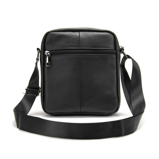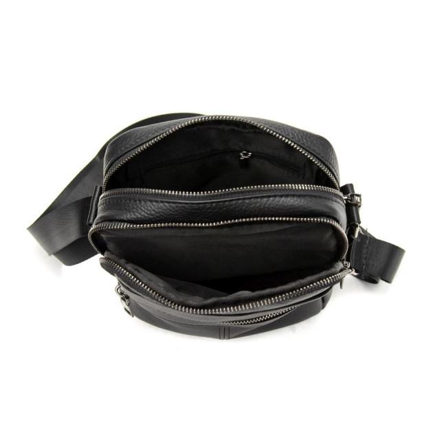 Сумка через плече Tiding Bag A25F-6625A-1 з натуральної шкіри чорного кольору, зернистої фактури.