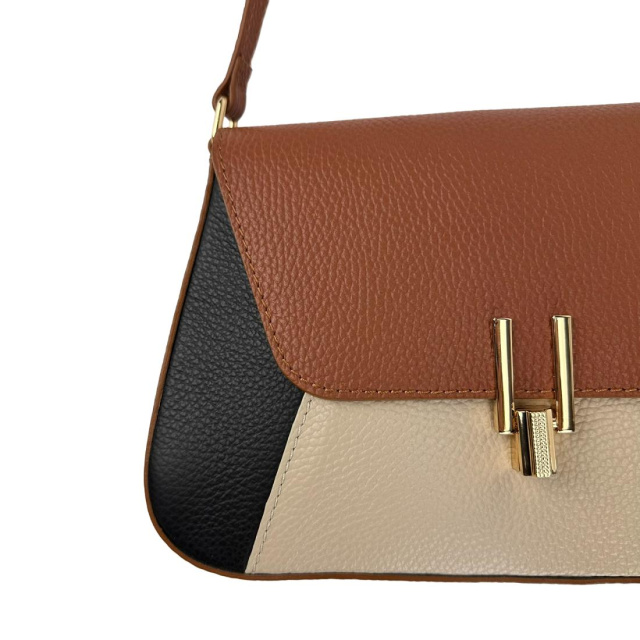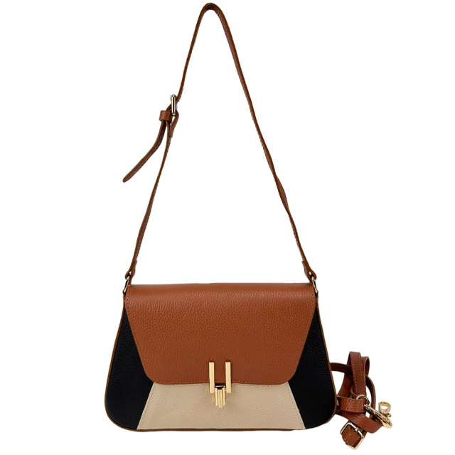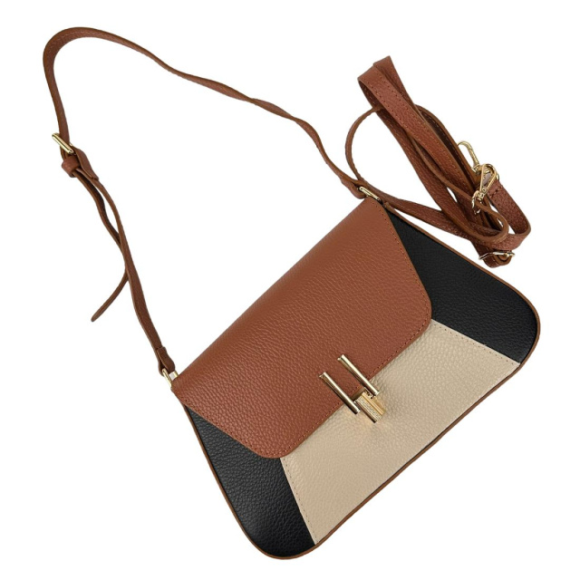 Коротка шкіряна ручка і наплічний довгий ремінець зі шкіри регулюється по довжині, відстібається за допомогою карабінів.