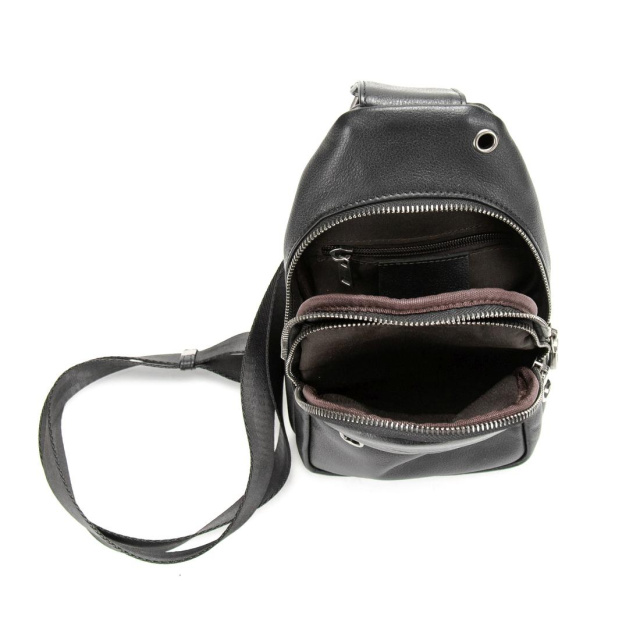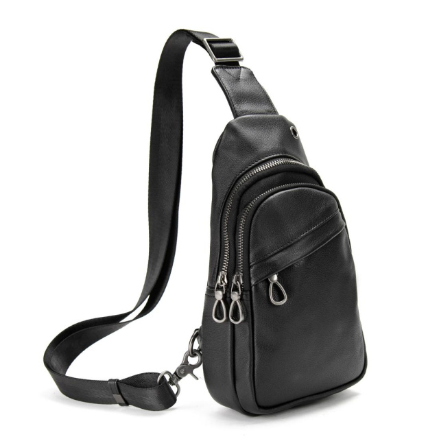 Чоловічі шкіряні сумки слінг чорного кольору.