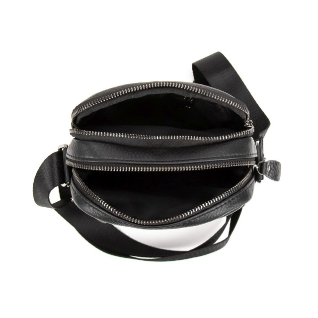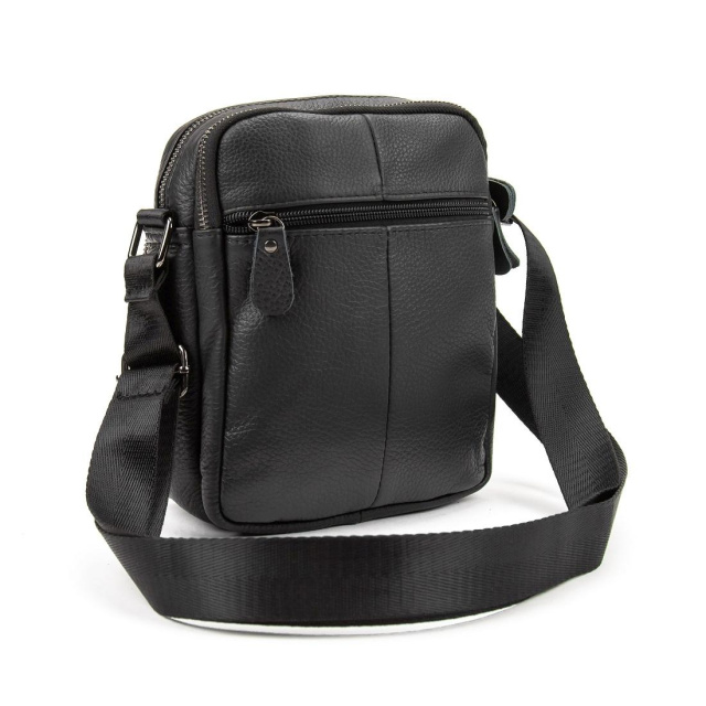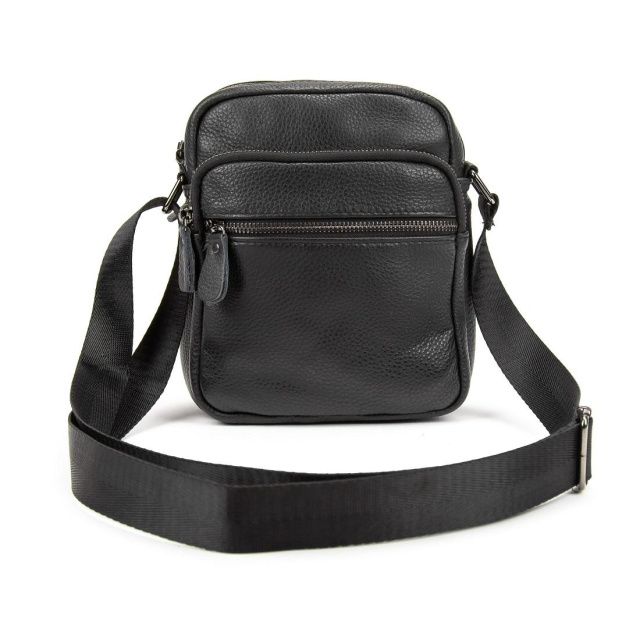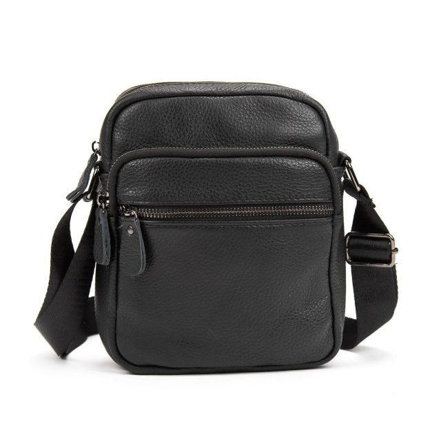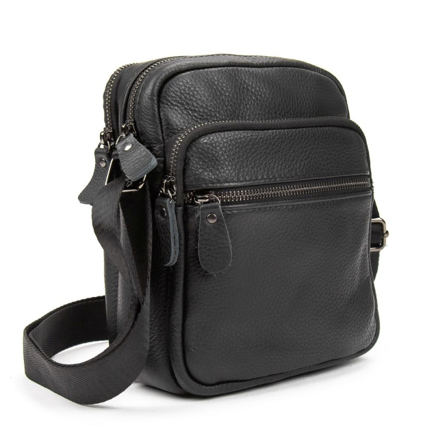 Сумка через плече 72004A із натуральної шкіри у чорному кольорі, зернистої фактури.