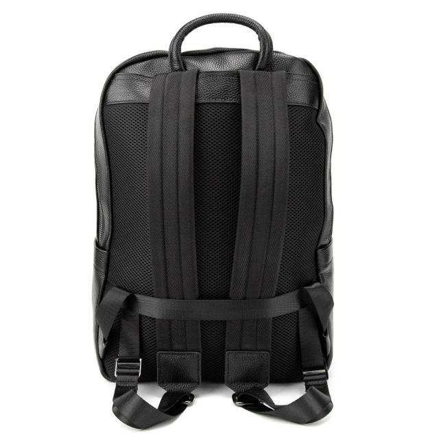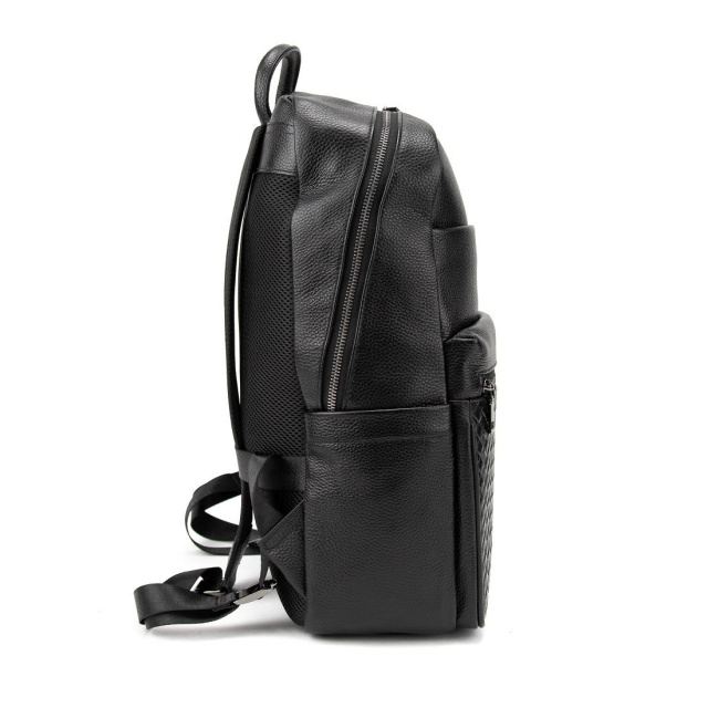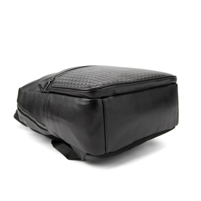 Чоловічий шкіряний рюкзак чорний Tiding Bag A25F-2418A виготовлений із натуральної шкіри чорного кольору, що має зернисту матову текстуру.