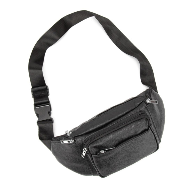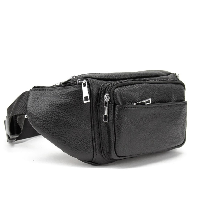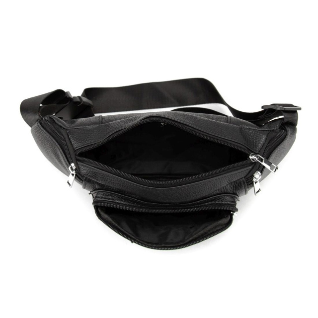 Містка шкіряна сумка на пояс чорна 72030A