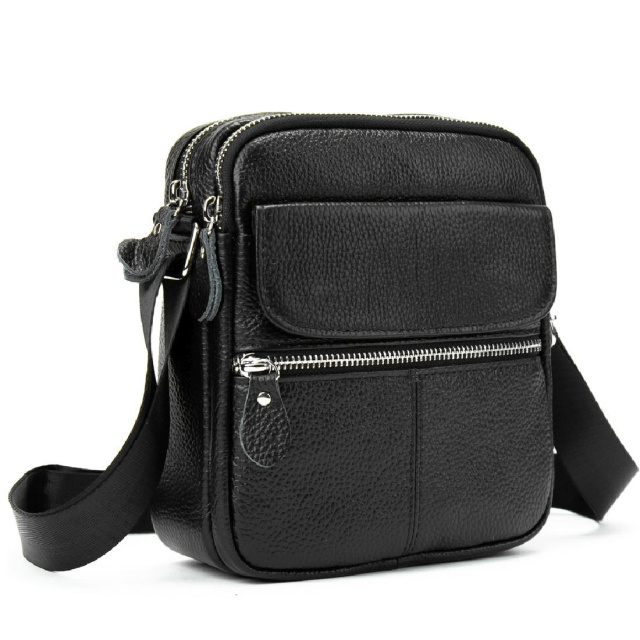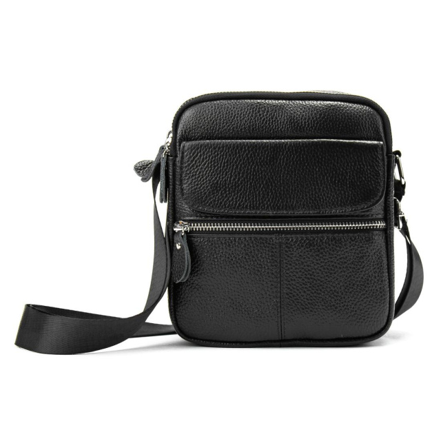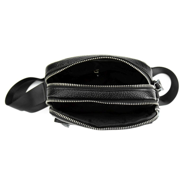 Сумка через плече 71189A з натуральної шкіри в чорному кольорі, зернистої фактури.