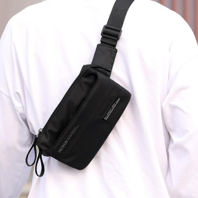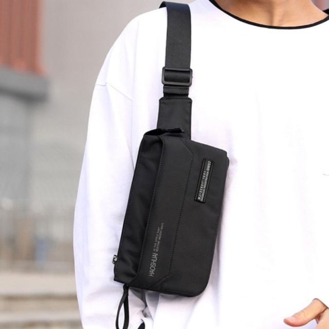Сумка на пояс Confident AT08-999-9A пошита з міцного текстилю в чорному кольорі.