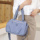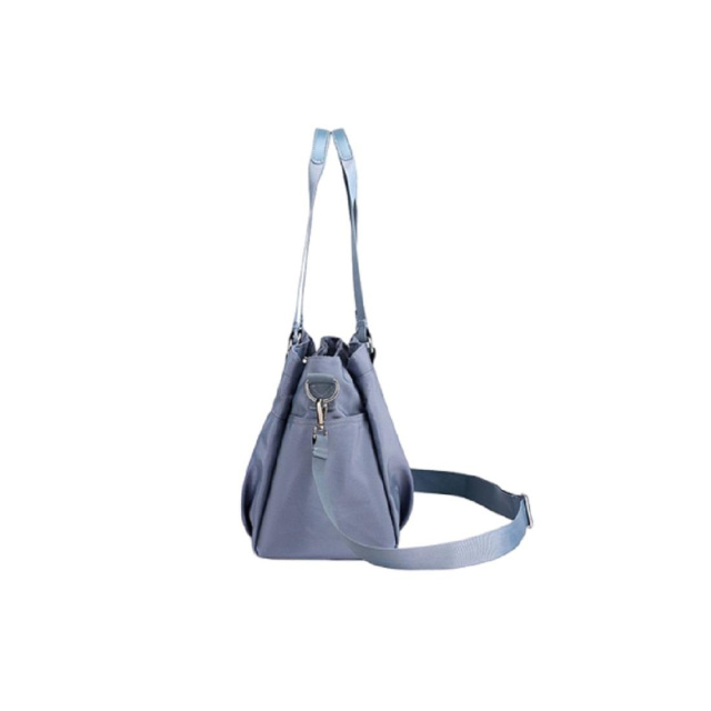 Крім двох коротких ручок сумка оснащена довгим текстильним ременем на плече, який регулюється по довжині і відстібається за допомогою карабінів.
