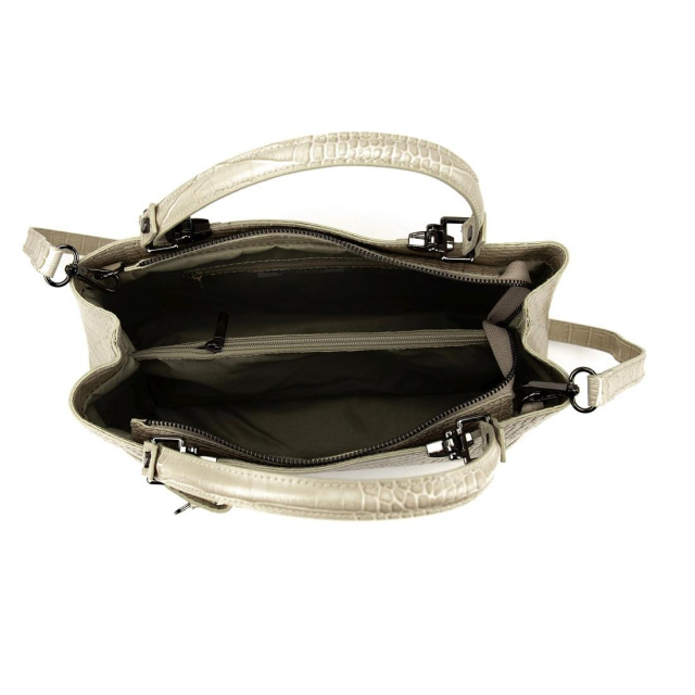 Сумка має одне основне відділення, яке закривається на блискавку. Усередині нього розташована додаткова кишеня для дрібниць та кишеня-перегородка на блискавці на всю довжину виробу.