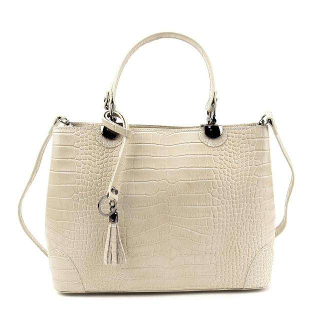 Також дизайн виробу доповнює знімний шкіряний брелок у вигляді пензлика. Сумочка має жорстку структуру, добре тримає форму.