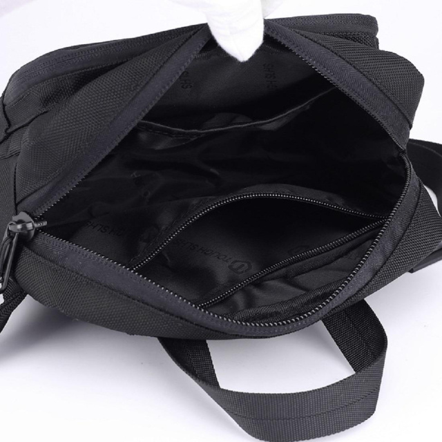 Поясний ремінь незнімного типу, регулюється по довжині. Універсальність даної моделі полягає в тому, що її можна носити як месенджер, і як поясну сумку. Також з тильного боку виробу пришито коротку ручку для комфортного перенесення її в руках.