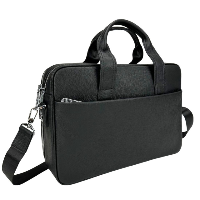 Стильна чоловіча сумка для ноутбука 7190015-4A виготовлена з натуральної шкіри чорного кольору і має матову, зернисту текстуру.