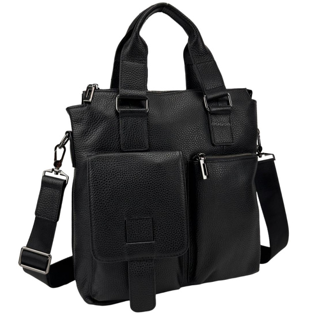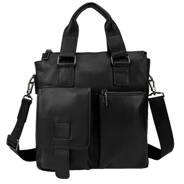 Чоловіча сумка через плече виготовлена із високоякісної шкіри чорного кольору.