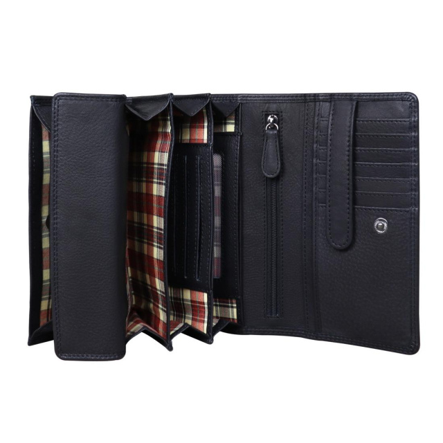 Усередині відділення кілька відсіків призначених для грошей, банківських карт. Є кишеня на блискавці.