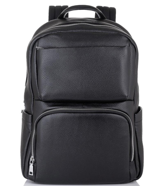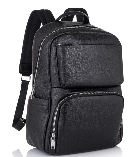 Стильний шкіряний чоловічий рюкзак Tiding Bag B3-154A виготовлений з натуральної шкіри чорного кольору має зернисту текстуру.