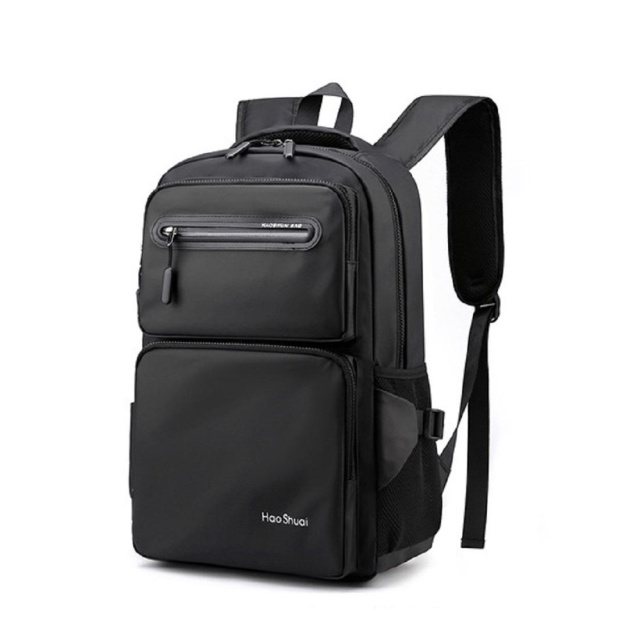 Рюкзак сделан из прочной черной ткани, идеально подходит для путешествий.