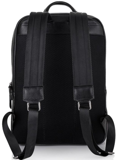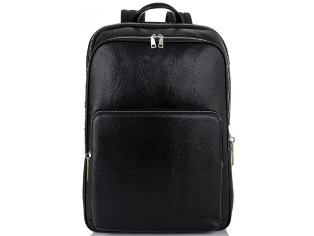 Стильний шкіряний чоловічий рюкзак 7NM11-184A виготовлений з натуральної шкіри чорного кольору має зернисту текстуру.