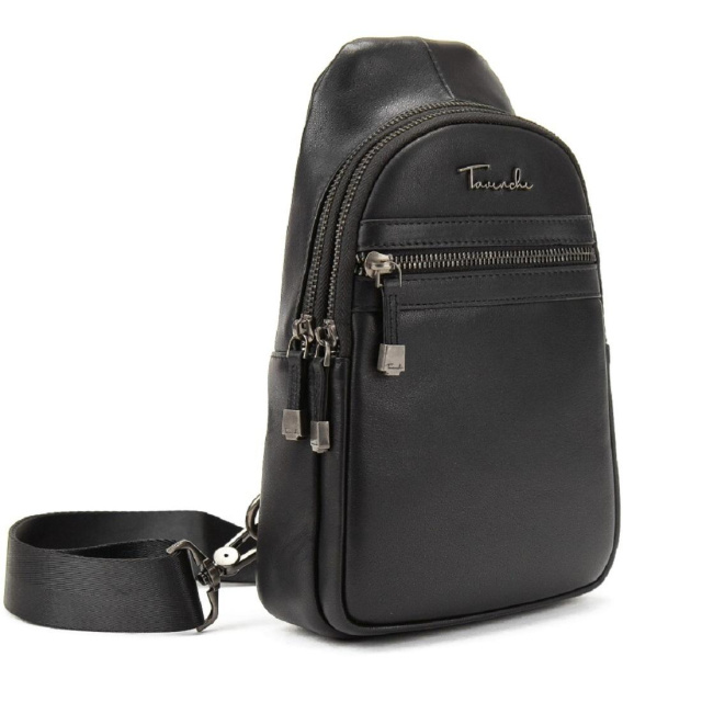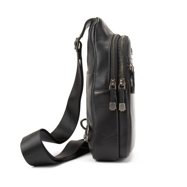 Чоловічий шкіряний слінг Tavinchi TV-SM8-830A виготовлено з натуральної шкіри, що має гладку поверхню.