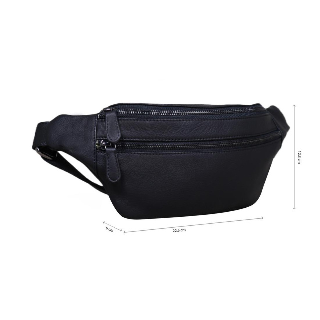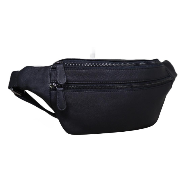 Чоловіча сумка на пояс зроблена з натуральної шкіри чорного кольору.