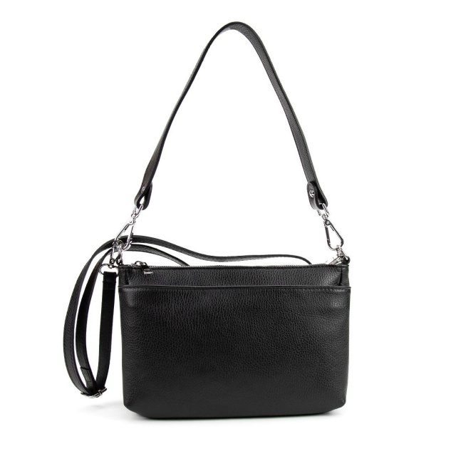Сумочка Firenze Italy F-IT-052A чорна із натуральної м'якої шкіри зернистої фактури.