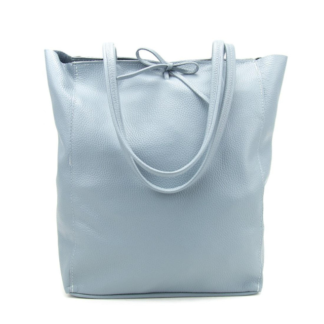 Жіноча сумка блакитний шоппер з натуральної шкіри