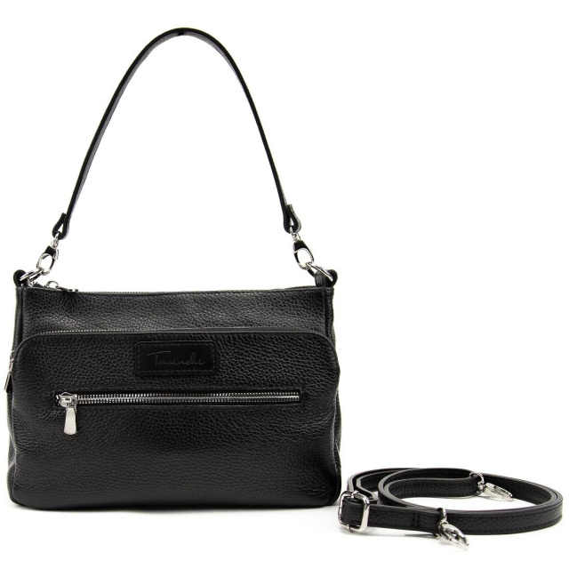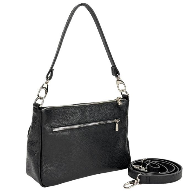 Коротка шкіряна ручка і наплічний довгий ремінець зі шкіри регулюється по довжині, відстібається за допомогою карабінів.