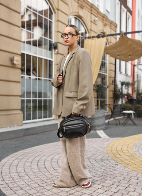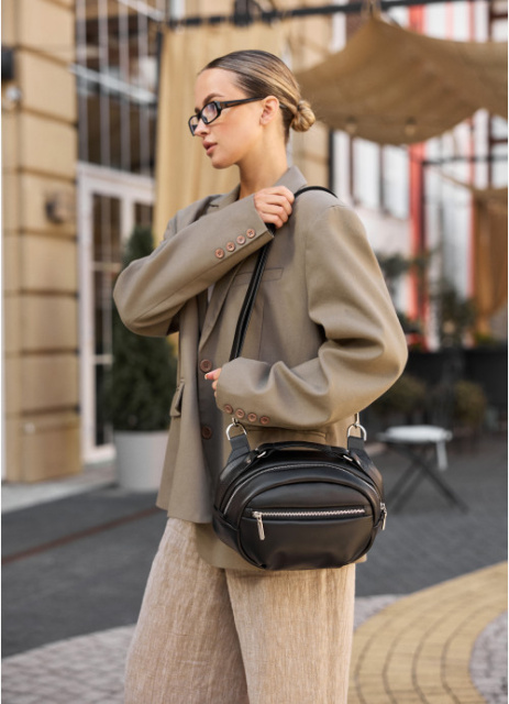 ззовні спереду сумки одна кишеня. Всередині сумки окреме одне основне відділення, кишеня на блискавці, відкрита кишеня та кишеня з сітки. Додатково має карабін для ключів. Ззовні на спинці сумки одна кишеня на блискавці. Стандартно поставляється на обхват по талії (через плече) від 86 см до 160 см: ремінь регулюється. При замовленні в коментарі зазначте необхідну довжину ременя, якщо вона відрізняється від стандартної.