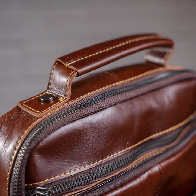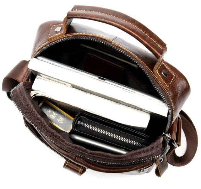 Стильна і комфортна чоловіча сумка для сучасних чоловіків, які люблять виглядати на всі 100. Шкіра такого плану дуже добре носиться і блищить на сонці. По краях аксесуар прошитий світлою ниткою. Всередині підкладка коричневого кольору. Така сумка прослужить вам дуже довго. Відмінний варіант для подарунка близькій людині. Сумка упакована в тканинний мішок від пилу і зносу.