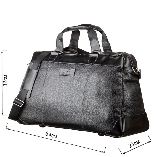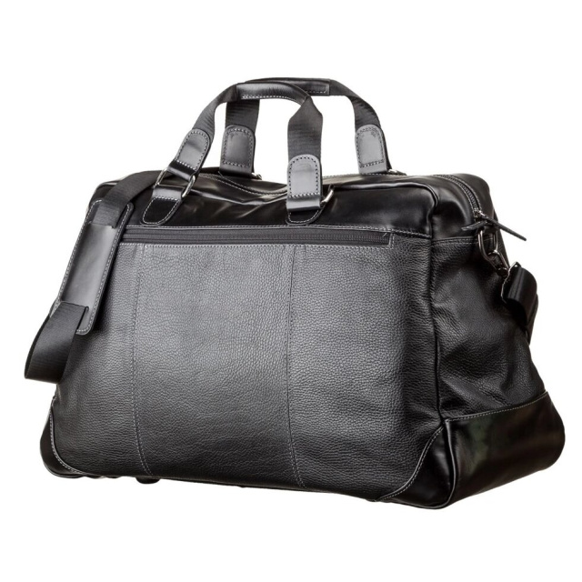 Міцна дорожня сумка на двох ручках для людей, які часто відправляються в ділові поїздки. Виріб виконаний з натуральної зернистої шкіри з елементами гладкої шкіри. Всередині велике вмістке відділення, з боків, на стінках відділення на блискавках. Ззовні відділення на змійці на задній стінці сумки.
