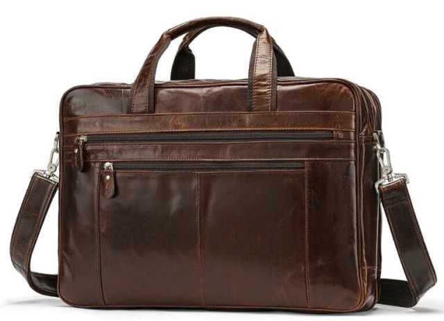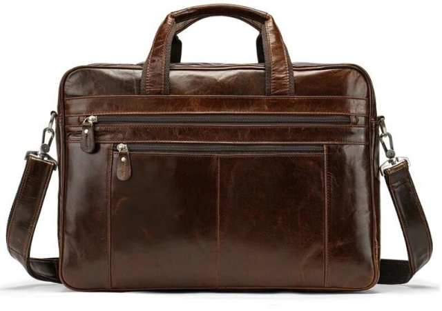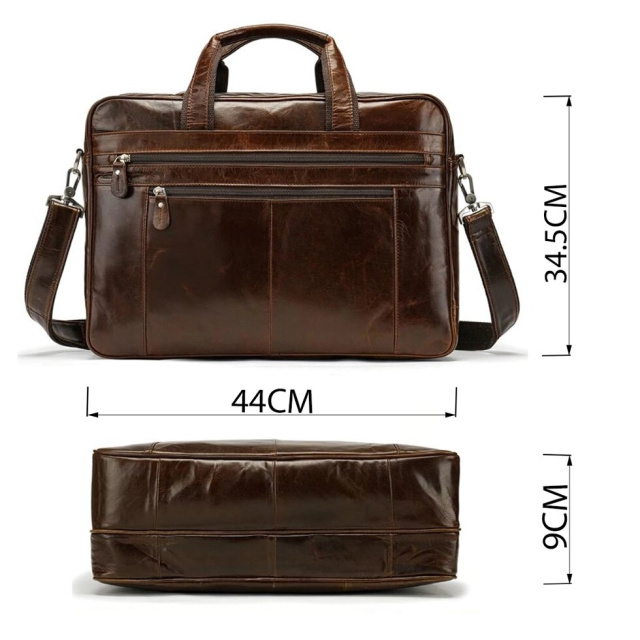 Солідна чоловіча сумка з натуральної шкіри для поїздок за кордон або відряджень. Всередині аксесуару щільна текстильна підкладка чорного кольору. Аксесуар доповнено регульованим ремінцем, що знімається. Дуже сучасна і продумана модель для вашої зручності і поїздок з ноутбуком. В сумку легко помістяться речі, в нетривалу поїздку, і необхідні папери. Два відділення і різноманітність кишень роблять модель ще більш функціональною.