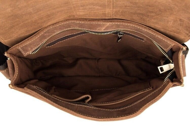 Шикарна чоловіча сумка середніх розмірів. Аксесуар виконаний з натуральної вінтажної шкіри, вироби з якої надзвичайно популярні в цьому році. Колір фурнітури: жовтий. Сумка закривається клапаном на магнітній кнопці, а також блискавкою. Носиться аксесуар через плече за допомогою зручного, регульованого плечового ременя. Сумка упакована в текстильний пилозахисний чохол білого кольору.