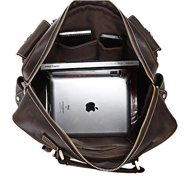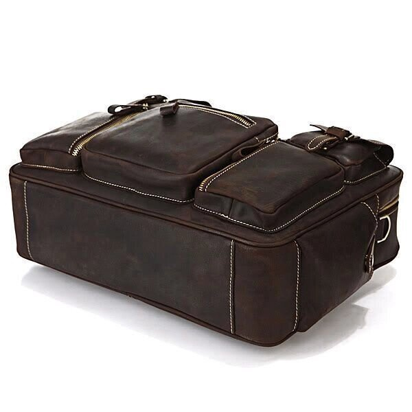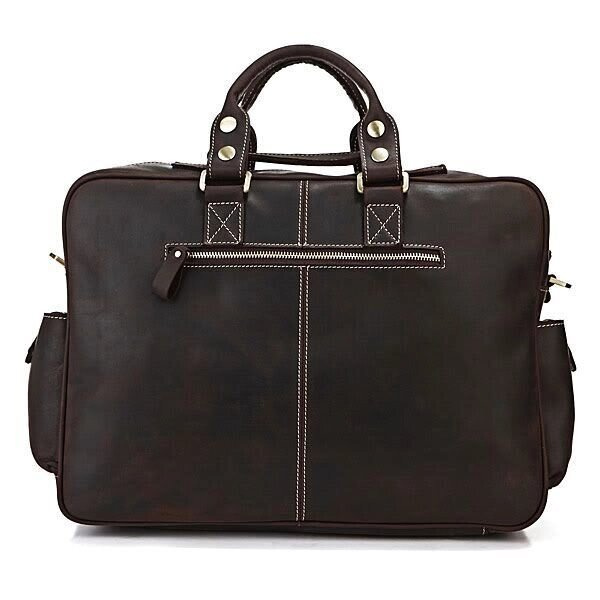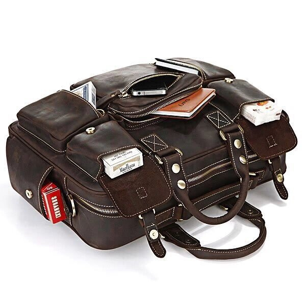 Представляємо Вам відмінну шкіряну сумку з товстої якісної вінтажної шкіри. Цей виріб можна віднести як до повсякденних сумок так і до шкіряних дорожніх сумок (саквояжів). Сумка відмінно зроблена - виглядає просто бомбезно. За функціональністю важко придумати кращу сумку, вона має безліч кишень і дуже зручна в експлуатації, її можна використовувати для ноутбука.
