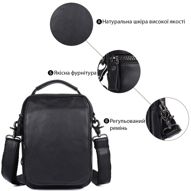 Зручна чоловіча сумка, має компактні розміри і приємну на дотик м'яку шкіру. Вона прекрасно виглядає і зручна у використанні, її можна носити в руці і на плечі (за допомогою плечового ременя, який йде в комплекті). У цій сумці можна носити багато невеликих аксесуарів, таких як невеликий блокнот, гаманець, візитки, переносна зарядка для телефону, ну і сам телефон. Вона прекрасно підійде для подарунка чоловікові до будь-якого свята ну або просто так.