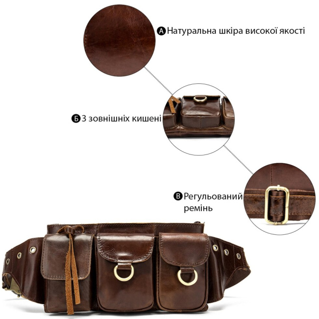 Стильна поясна сумка з натуральної шкіри. Модель має текстильний регульований ремінець на пояс зі шкіряною вставкою. Бананка користуються особливою популярністю у водіїв і мандрівників, а також в умовах міського життя. Особливістю сумки є її невелика вага і розмір. Всередину поміститься все найнеобхідніше: гроші, документи, телефон і ін. Модель дуже м'яка і приємна на дотик. Колір шкіри красиво грає на сонці. Аксесуар може замінити вам барсетку. Сумка звільнить ваші руки і вбереже особисті речі в безпеці. Модель упакована в пилозахисний чохол.