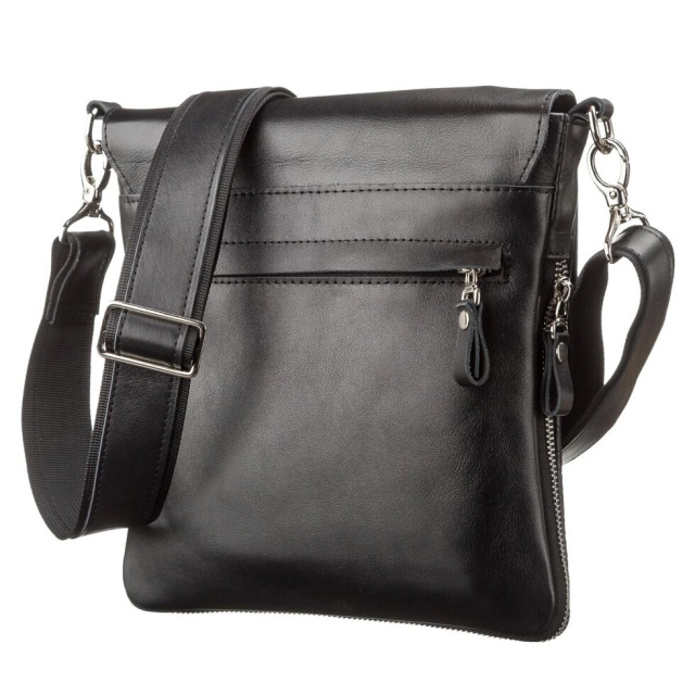 Закривається аксесуар клапаном на двох магнітах. При відкритті є добротна накладна кишеня. Головне відділення закривається блискавкою, для додаткового захисту особистих речей.Всередині на задній стінці розташована прихована кишеняна змійці, на передній стінці нашитий для габаритного смартфона або портмоне.