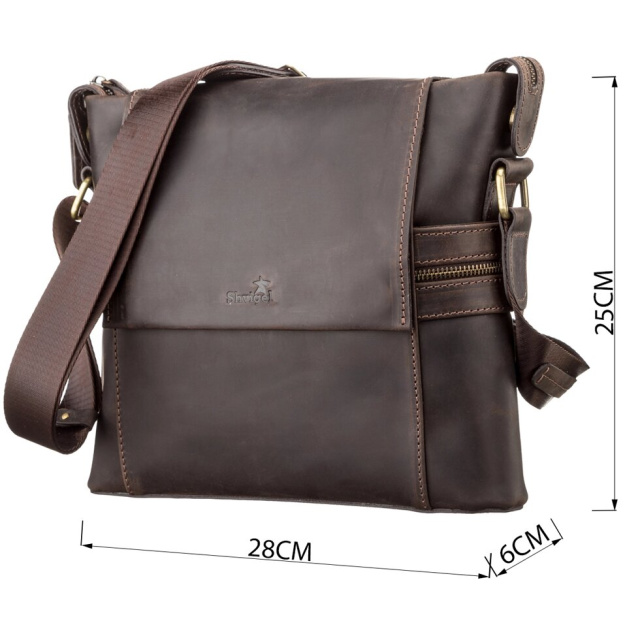 Відмінна чоловіча шкіряна сумка, з натуральної вінтажної шкіри, через плече, середнього розміру з клапаном. Вмістка і зручна. У неї можна помістити зошит, планшет, телефон та інші дрібниці.