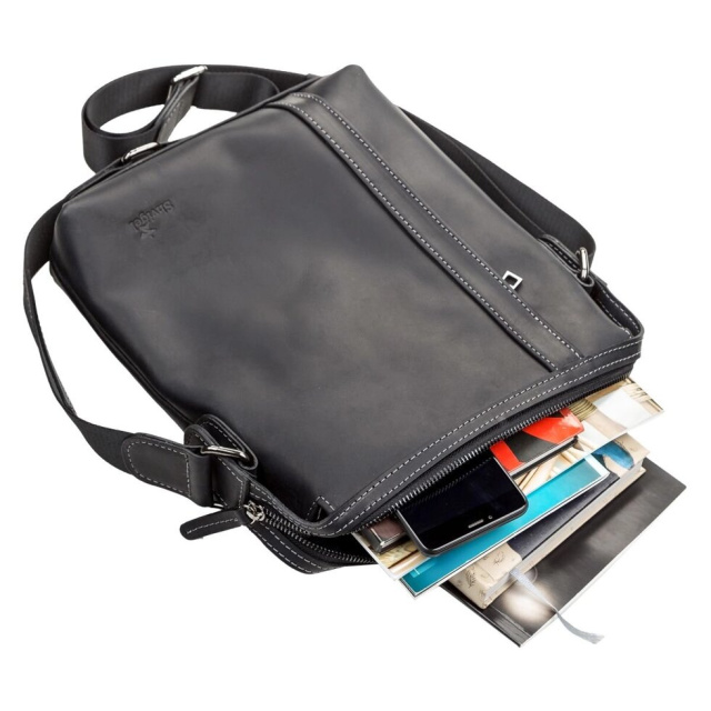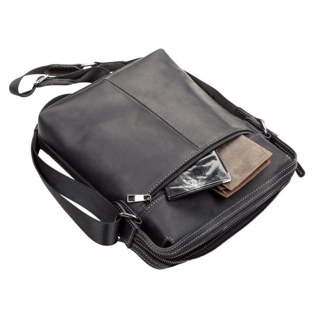 Красива сумка для стильних чоловіків виконана з натуральної вінтажної шкіри, характерними ознаками якої є: неоднорідність забарвлення і потертості, які надають виробу вишуканого, індивідуального виду. Всередині: кишеня-перегородка на блискавці, кишеня для телефону, відділення для ручок і дрібниць,