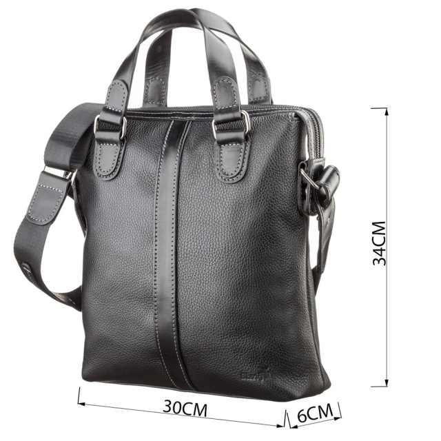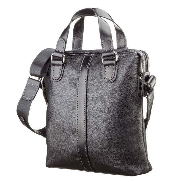 Ділова сучасна сумка з натуральної зернистої шкіри, з двома шкіряними ручками з гладкої шкіри.