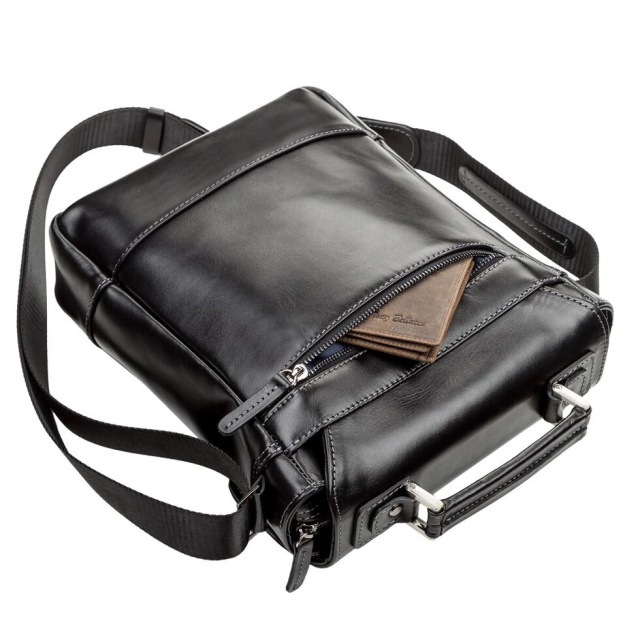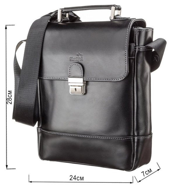 Цікава чоловіча сумка з ручкою і клапаном із застібкою, що закривається на ключ. Розмір дуже зручний. Особливість дизайну дозволить чоловікові носити з собою особисті речі, документи, багато потрібних дрібниць. Сумка виконана з натуральної гладкої шкіри, м'якої і приємної на дотик.