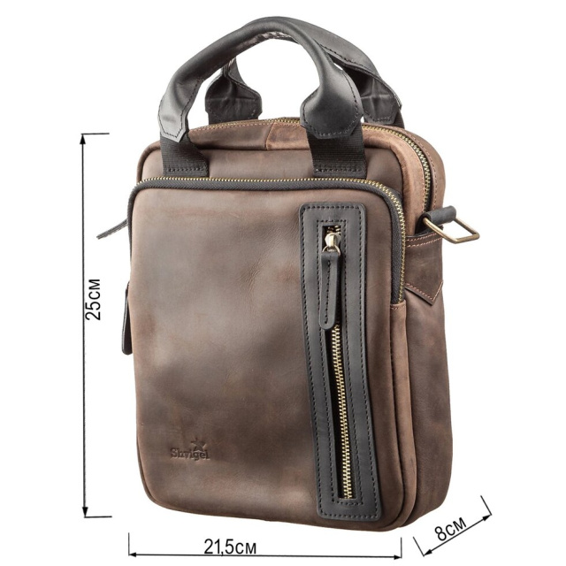 Новинка від українського виробника Shvigel в поєднанні двох популярних кольорів. Аксесуар виконаний з натуральної телячої шкіри найвищої якості. Усередині сумки міцна текстильна підкладка синього кольору. Така сумка дуже зручна для роботи або зустрічей. У неї чудово вміститься планшет і все необхідне на кожен день. Є 2 варіанти носіння сумки: в руках за допомогою відповідних шкіряних ручок і на плечі за допомогою зйомного ремня. Аксесуар буде чудовим варіантом для тих, хто водить машину, тому що модель дуже зручно діставати і вона не затирається. Сумка доповнена золотистою фурнітурою. Модель виконана в шкірі Crazy horse.
