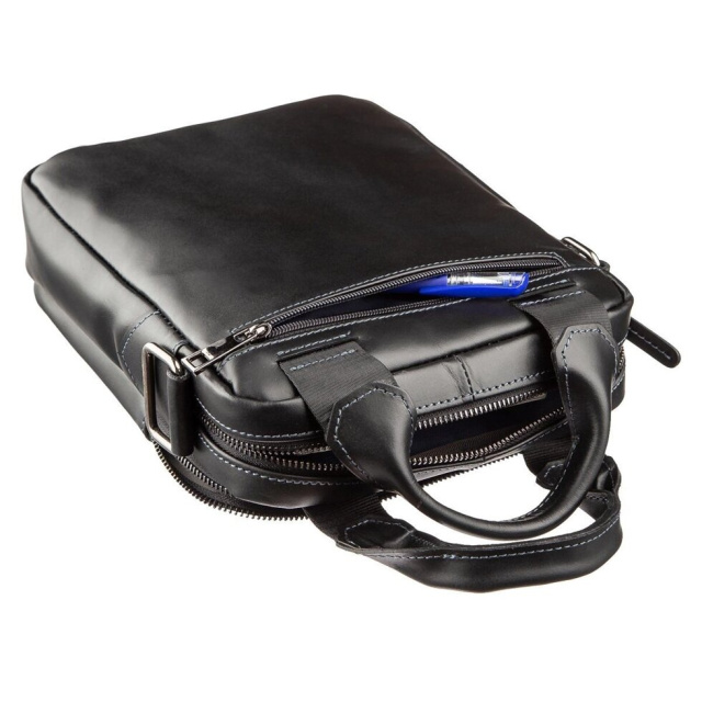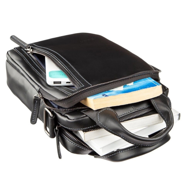 Сумка з натуральної шкіри від українського виробника найвищої якості. Така модель є на сайті в різних кольорах і в різній шкірі. Для любителів класики - чорний колір та гладка шкіра. На зовнішній стороні також нанесений логотип бренду. Сумка стане прекрасним помічником для будь-якого чоловіка. Аксесуар прослужить вам далеко не один рік. Купуючи сумку від українського виробника, ви можете бути впевнені, що це дійсно натуральна шкіра і висока якість. Модель упакована в тканинний чохол оранжевого кольору.