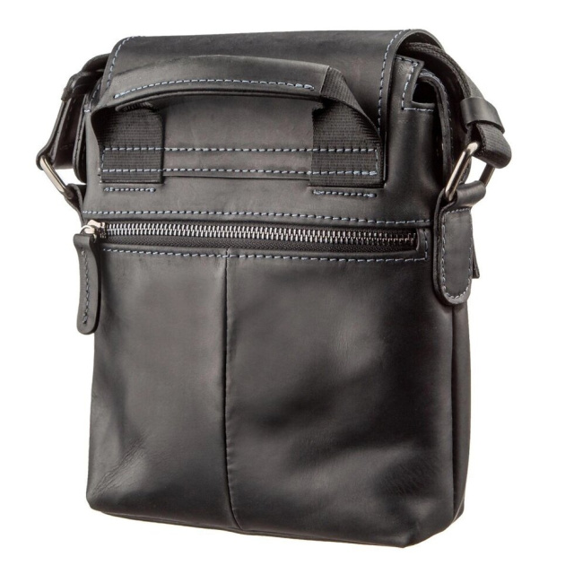 Чоловіча шкіряна сумка невеликого розміру з клапаном на закритих магнітах. Аксесуар виконаний з натуральної вінтажної шкіри, характерними ознаками якої є: неоднорідність забарвлення і потертості, які надають особливий зовнішній вигляд. Модель розроблена спеціально для найстильніших чоловіків. Всередині: різноманітні кишені для вашої зручності і синя текстильна підкладка. Аксесуар прошитий по краях світло-синьою ниткою, що додає моделі особливого шику. Сумка упакована в тканинний чохол.