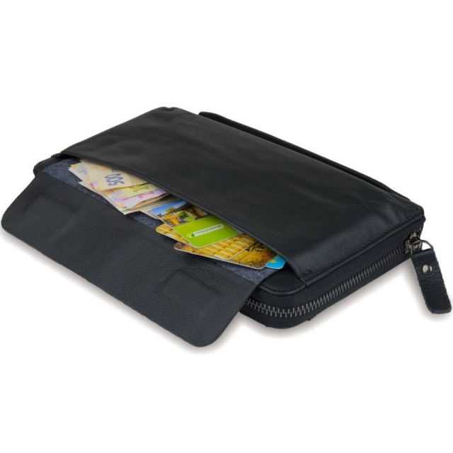 Суперстильна барсетка для чоловіків. У барсетку ви можете покласти все найнеобхідніше і все буде під рукою. Внизу аксесуара є ремінець для носіння на руці, що дуже зручно у використанні. Шкіра м'яка на дотик. Фурнітура в клатчі кольору темного срібла. По краях аксесуар прошитий темною ниткою. У барсетку можна помістити свій телефон, щоб не заважав в руках.
