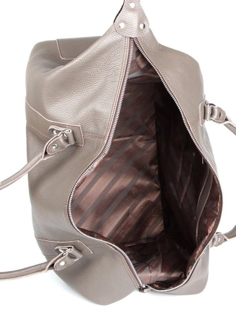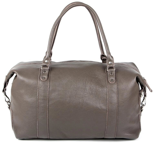 Надміцна дорожня сумка з натуральної високоякісної шкіри. Аксесуар виконаний в сірому кольорі. Колір фурнітури: срібло. Дно сумки захищене металевими ніжками. Виріб може бути використано для нетривалого вікенду або походу в спортзал. Аксесуар упакований в текстильний пилозахисний чохол.
